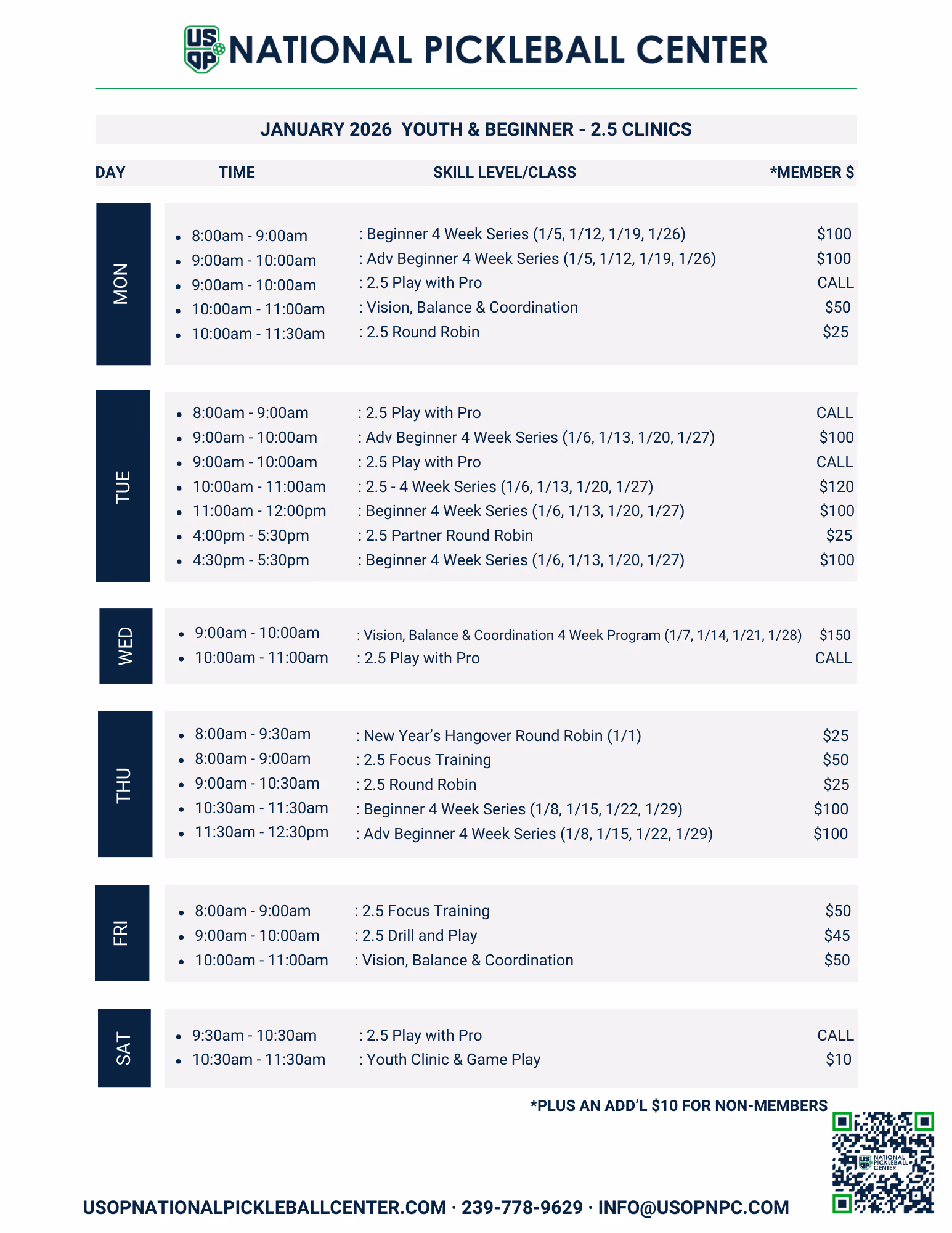 Beginner 4-Week SeriesWe are offering a series of four one-hour clinics (lessons) focused on teaching and developing skills and in-game strategies through drills and game playing. (Sessions are limited to 8 participants, with a minimum of 4 participants).These clinics run for 4 four weeks and are one hour per week. Click here to register
